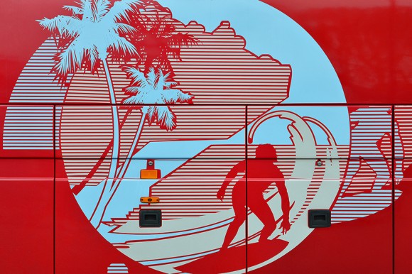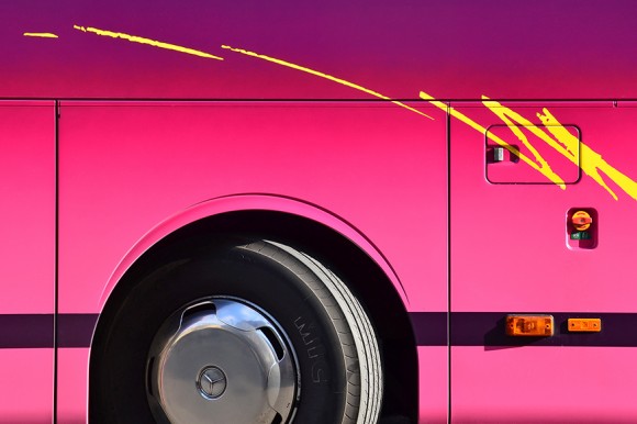 Un giorno il nostro Taylor, girandosela per le vie della città, mette gli occhi sulla fiancata di un bus, uno di quelli che portano 16enni arrapati in gita a Praga per il viaggio di terza liceo. Mette gli occhi sui fianchi di questo bestione, dicevamo, gli scatta una foto e inizia un viaggio straordinario in stile Springmachine tra le più incredibili grafiche di tour bus d’Europa.